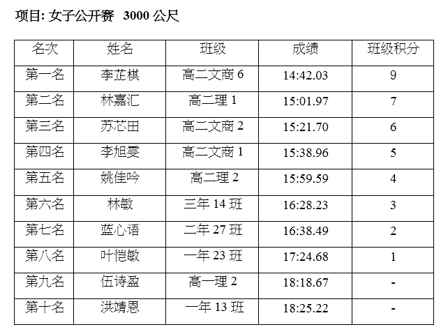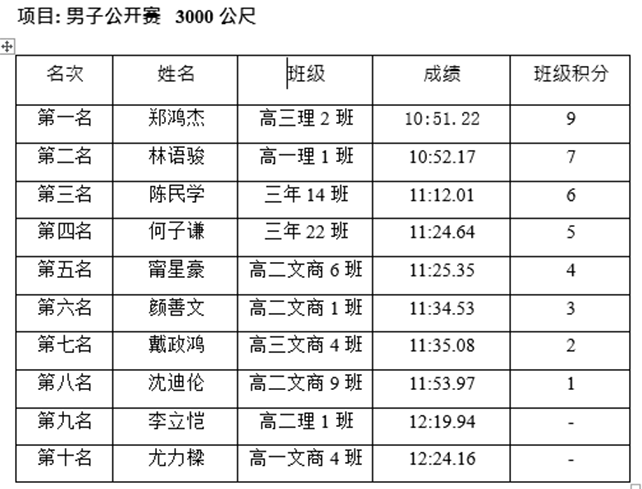 田径总记录成绩表