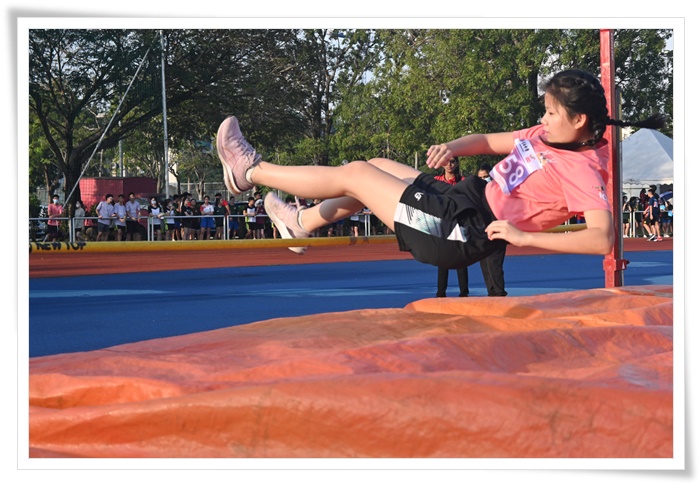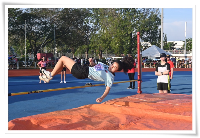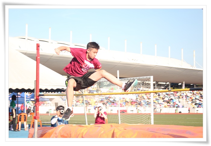 女甲跳高吴湄思(S3C1)双脚一蹬越过栏杆,以1.1公尺的成绩夺得冠军