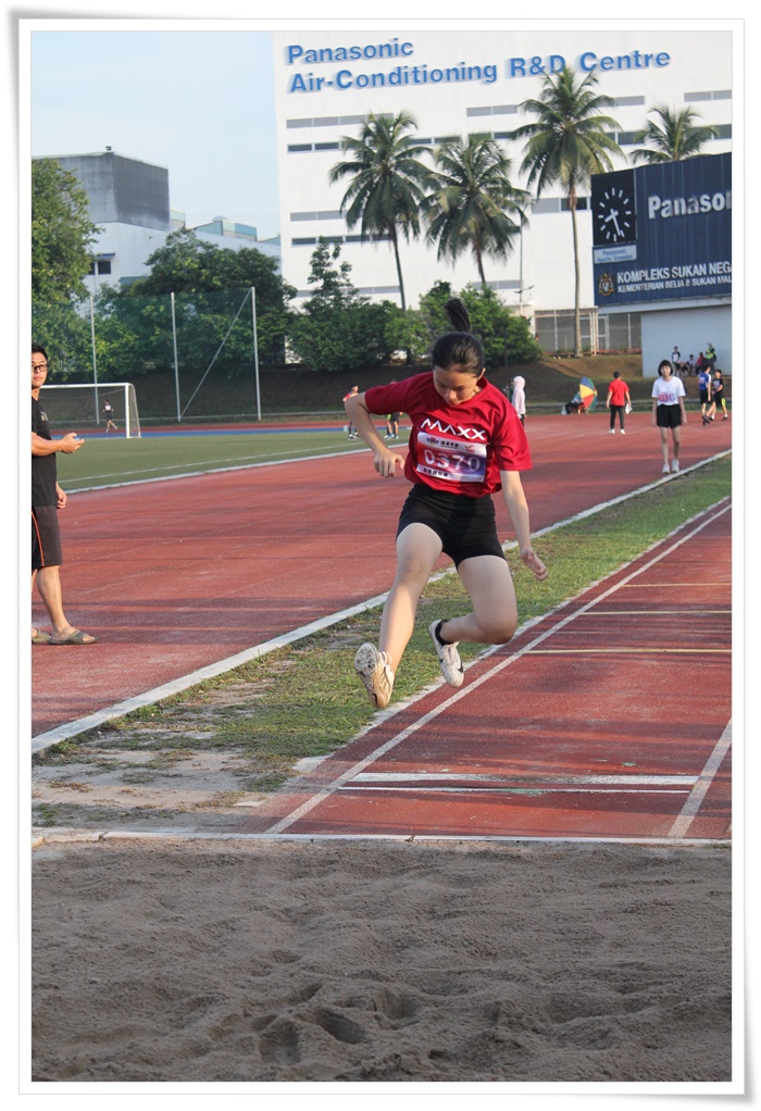 男丙跳远锺镇泽(J225)稳步落地,夺得冠军