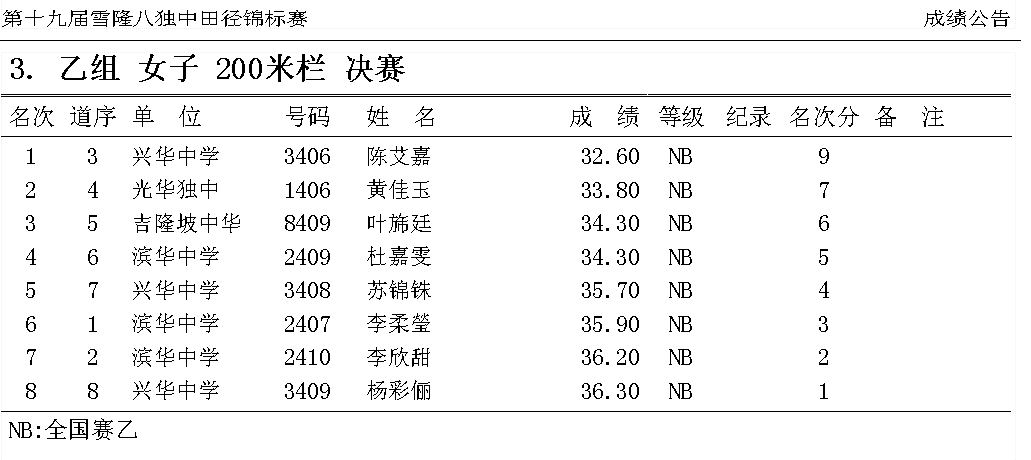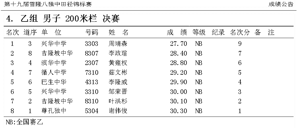 200M跨栏乙组