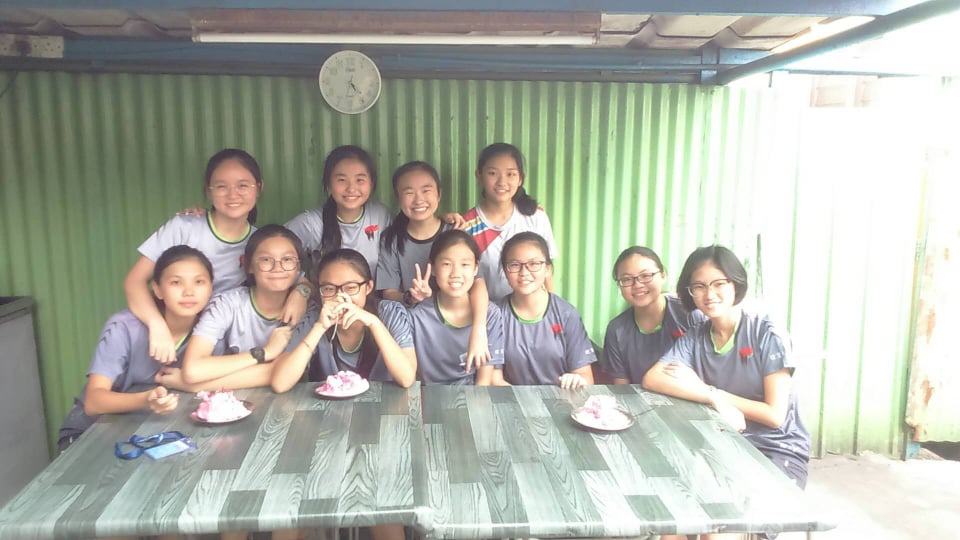 第一次跟他们外出,到学校附近的卖冰点吃冰。那个时候佳萱还没退校队。